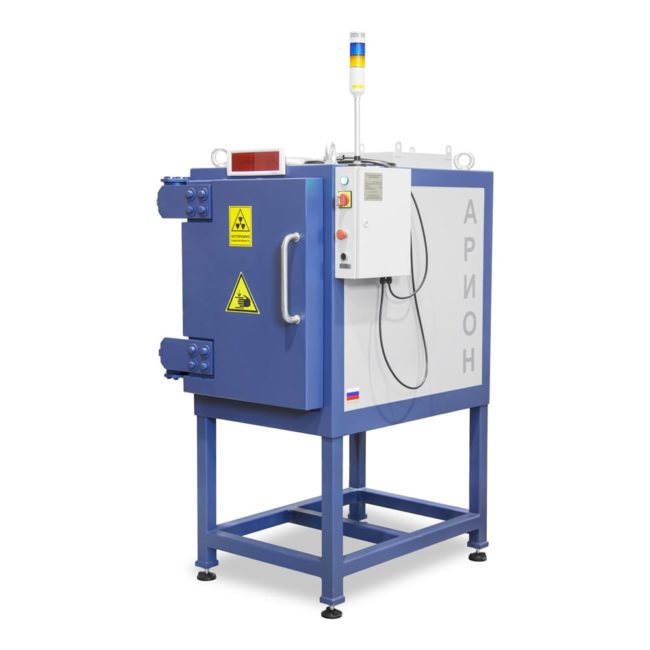 Конструкция защитной камеры выполнена из стали и свинца, имеет одну распашную дверь для позиционирования рентгеновского аппарата на манипуляторе внутри кабины и загрузки объекта контроля.